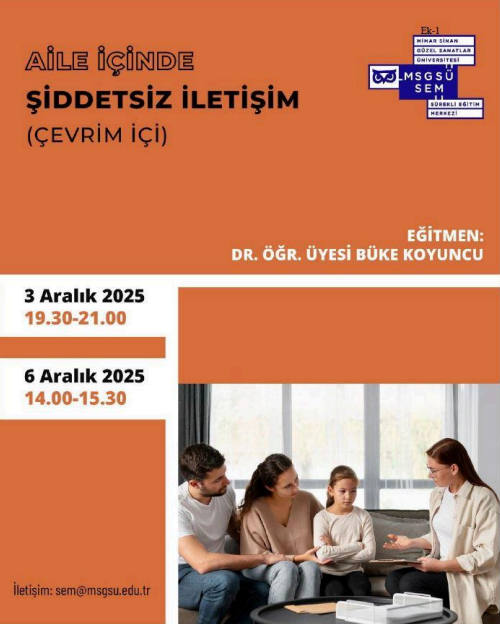 Mimar Sinan Güzel Sanatlar Üniversitesi Sürekli Eğitim Uygulama ve Araştırma Merkezi (SEM) tarafından Aile Yılı kapsamında hazırlanan "Aile İçinde Şiddetsiz İletişim" webinarı düzenlenecektir.