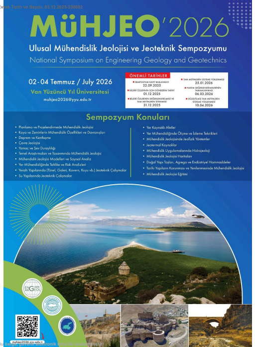Van Yüzüncü Yıl Üniversitesi Mühendislik Fakültesi ve Mühendislik Jeolojisi Derneği tarafından 02-04 Temmuz 2026 tarihleri arasında Van Yüzüncü Yıl Üniversitesinde "MÜHJEO-2026 (Ulusal Mühendislik Jeolojisi ve Jeoteknik Sempozyumu)" düzenlenecektir.