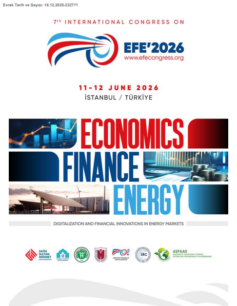Fatih Sultan Mehmet Vakfı Üniversitesi ev sahipliğinde; Hoca Ahmet Yesevi Uluslararası Türk-Kazak Üniversitesi, Kocaeli Üniversitesi, İbn Haldun Üniversitesi, Ekonomi Finans ve Enerji Derneği (EFE), Scientific Basis and Issues of Development of Uzbekistan Economy ve ASFAAG- Academy of Sustainable Finance, Accounting, Accountability & Governance işbirliği ile 11-12 Haziran 2026 tarihlerinde Ayasofya Yerleşkesinde "7th International Congress on Economics, Finance & Energy (EFE'2026)" kongresi düzenlenecektir.