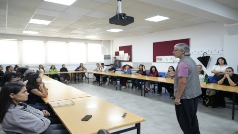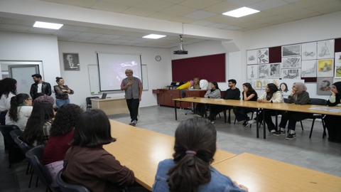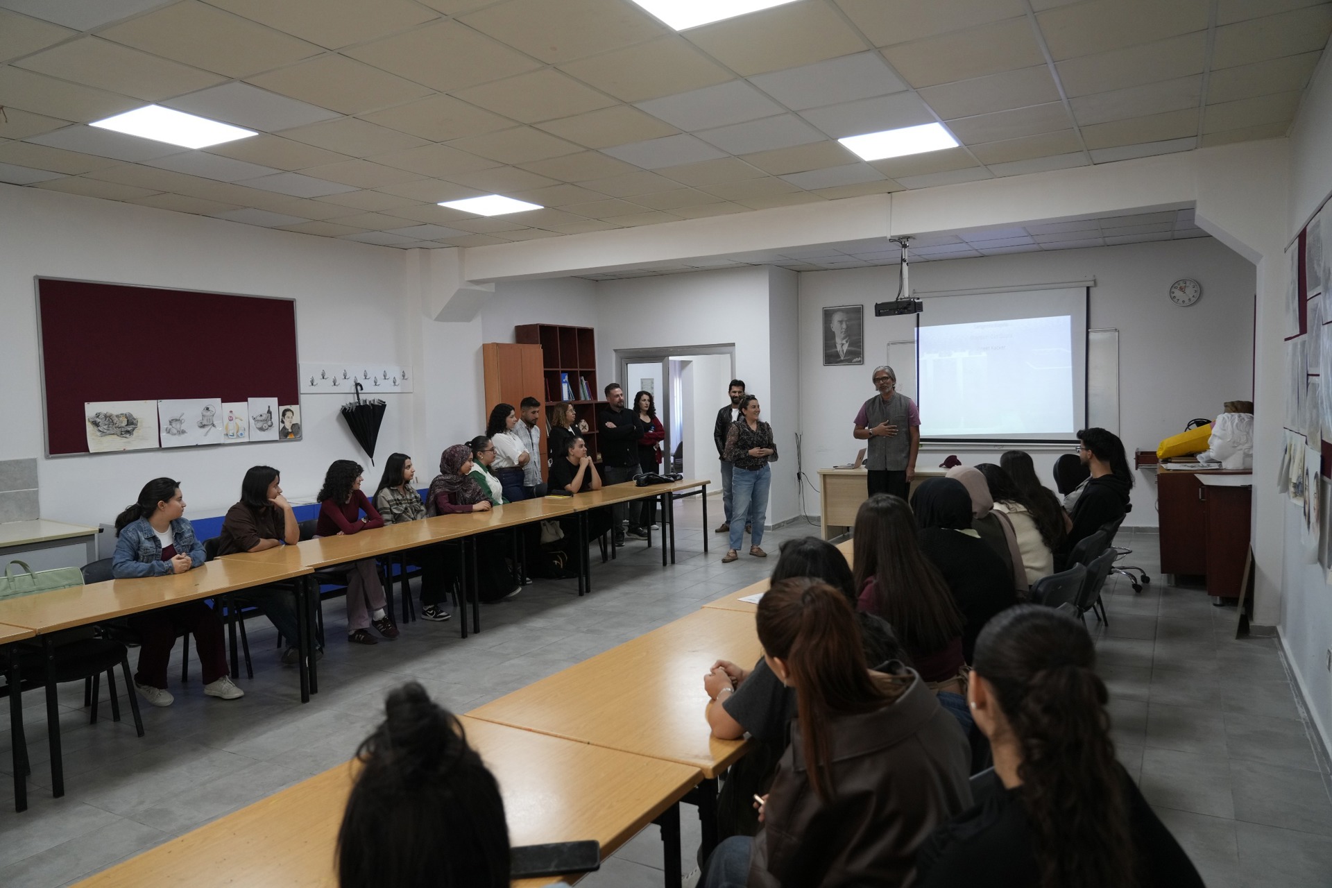 “Sanatçının Ülkesi, Sanatı ve Yaratım Süreci” başlıklı söyleşi ve atölye çalışmasında Badaruddin, sanat yolculuğunu, üretim sürecini ve sanata bakışını öğrenciler ve akademisyenlerle paylaştı.