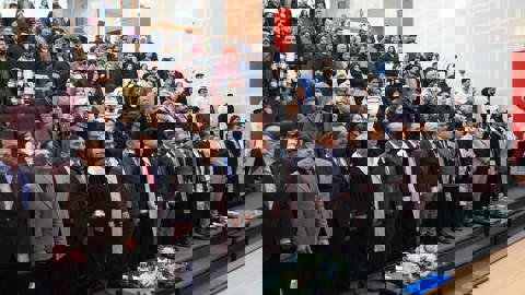 Tören, saygı duruşu ve İstiklal Marşı’nın okunmasıyla başladı. Programın açılış konuşmasını Diş Hekimliği Fakültesi Dekanı Prof. Dr. Yasin Çiçek yaptı.